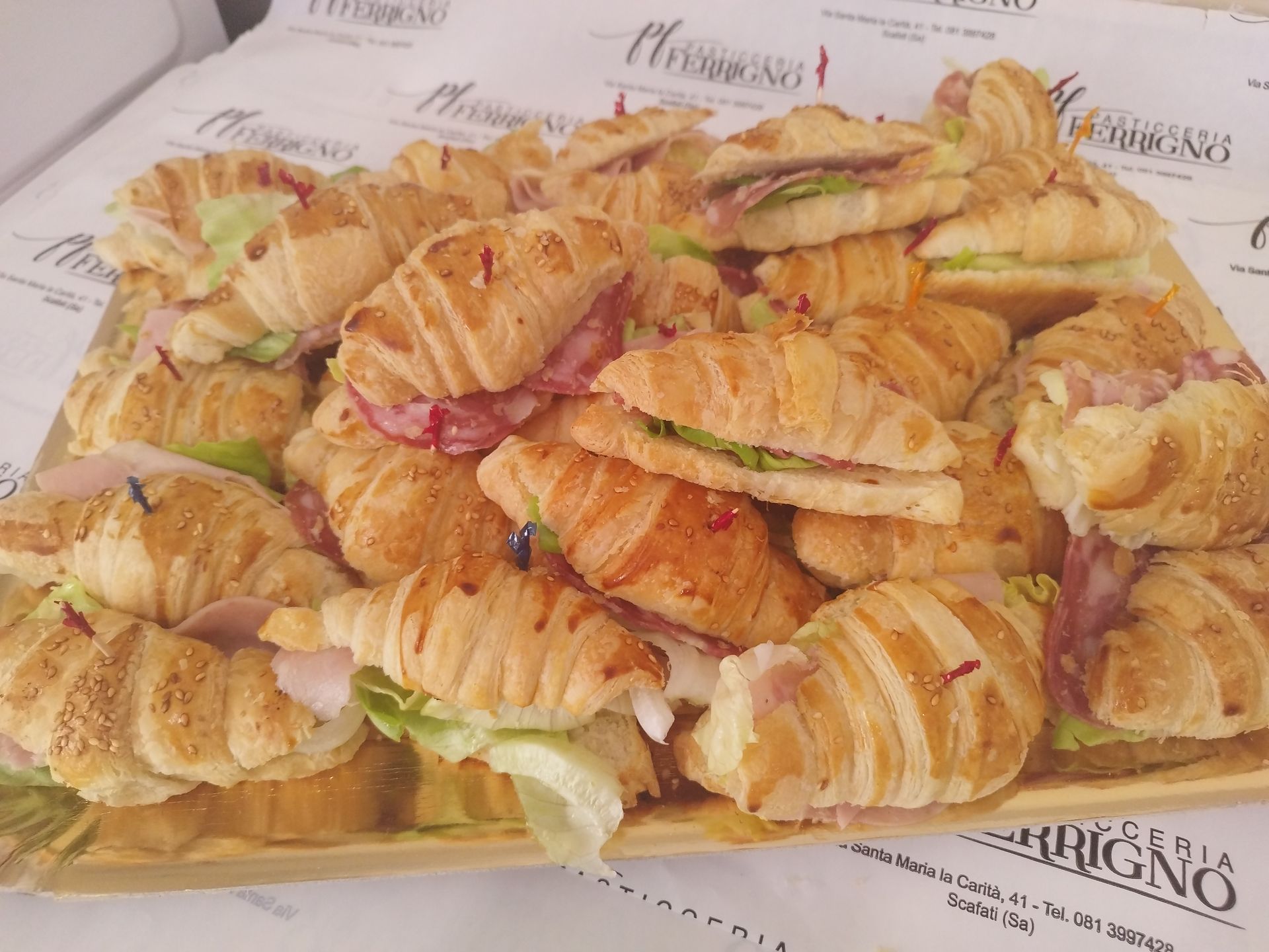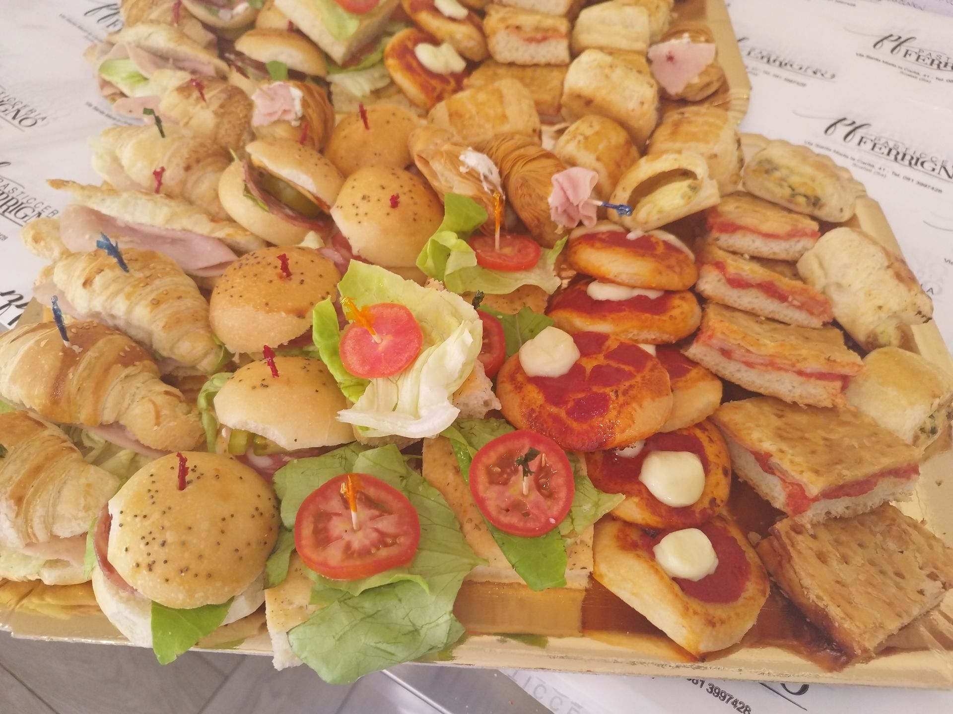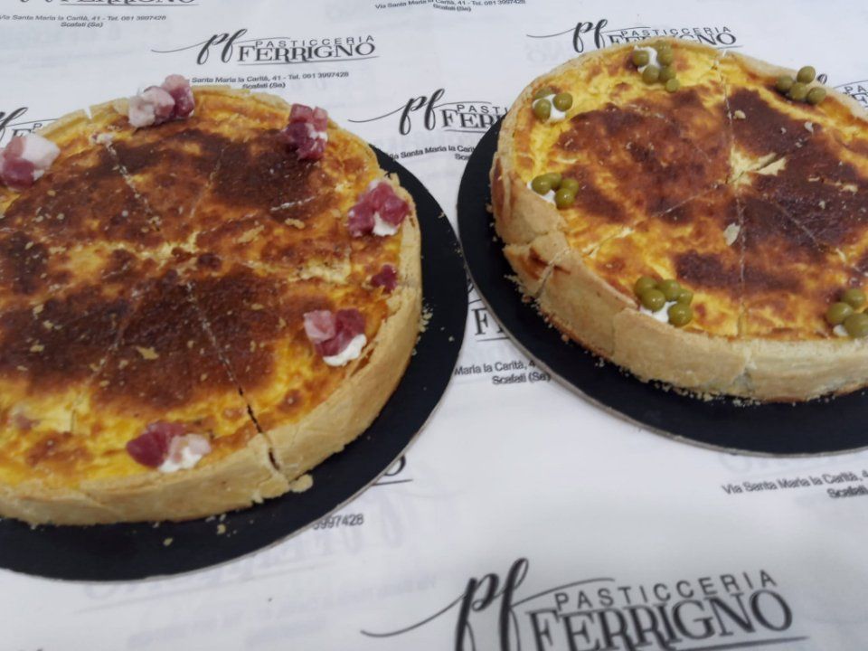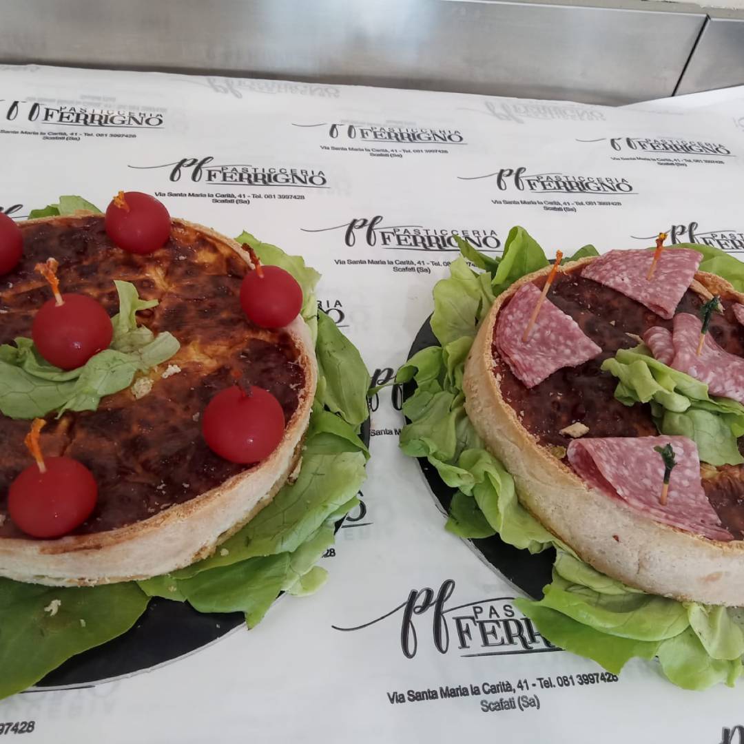 Pasticceria Ferrigno a Scafati, provincia di Salerno, è un punto di riferimento anche per le golosità salate come rustici, cornettini salati ripieni, panini al latte salati con salumi e non solo, dolci rivisitati in chiave salata, pizzette bianche o rosse o con verdure, parigine, sfogliatelle, danubi salati e tanto altro ancora che potrai inserire nel tuo buffet da asporto o a domicilio. Per un catering davvero perfetto, affidati a Pasticceria Ferrigno: accoglieremo ogni tua richiesta ed esigenza per creare il miglior evento possibile, curando il menù dolce e salato e una selezione per l'aperitivo.